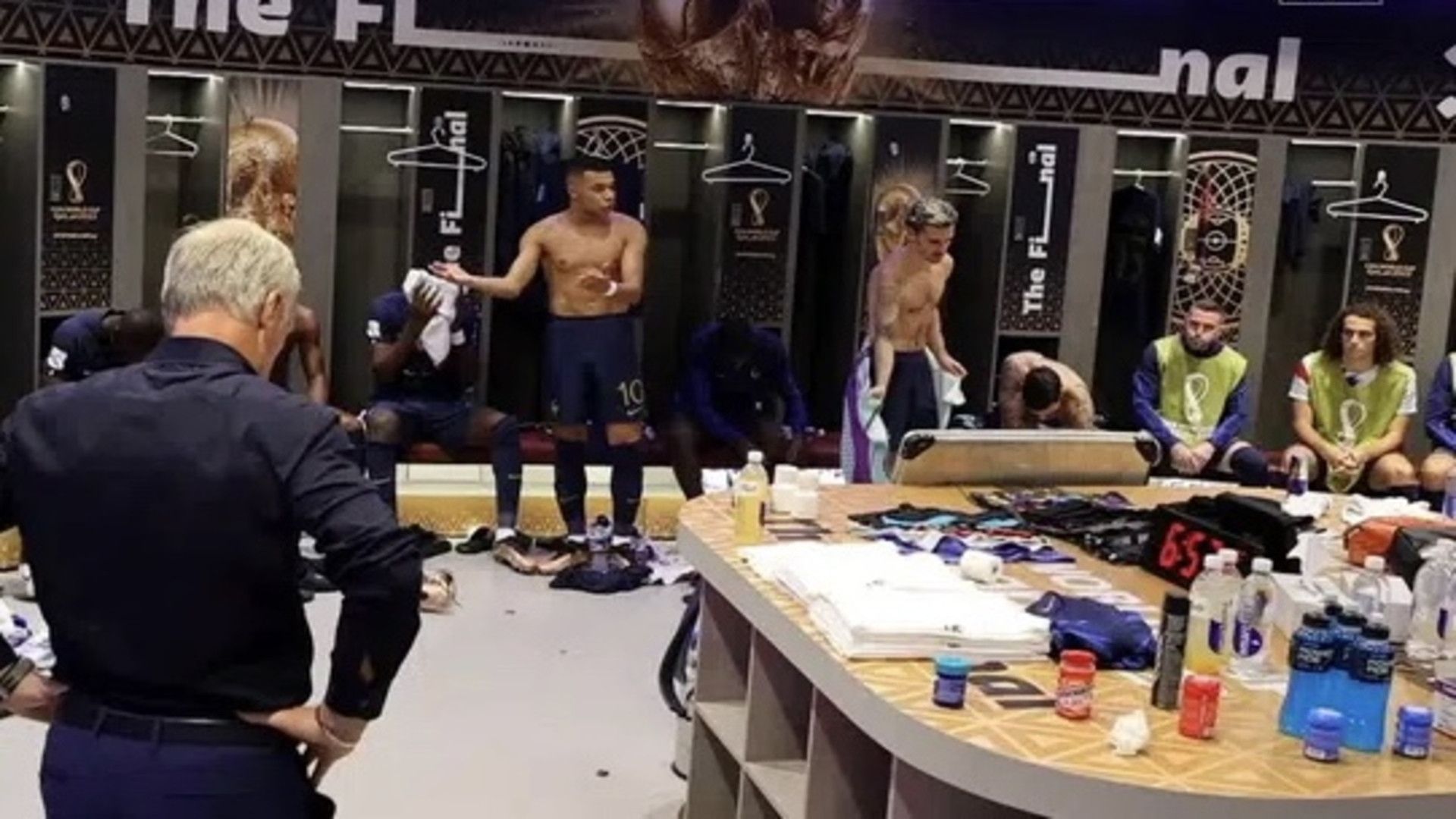 Kylian Mbappé furioso con i compagni di squadra durante la finale dei Mondiali in Qatar.…