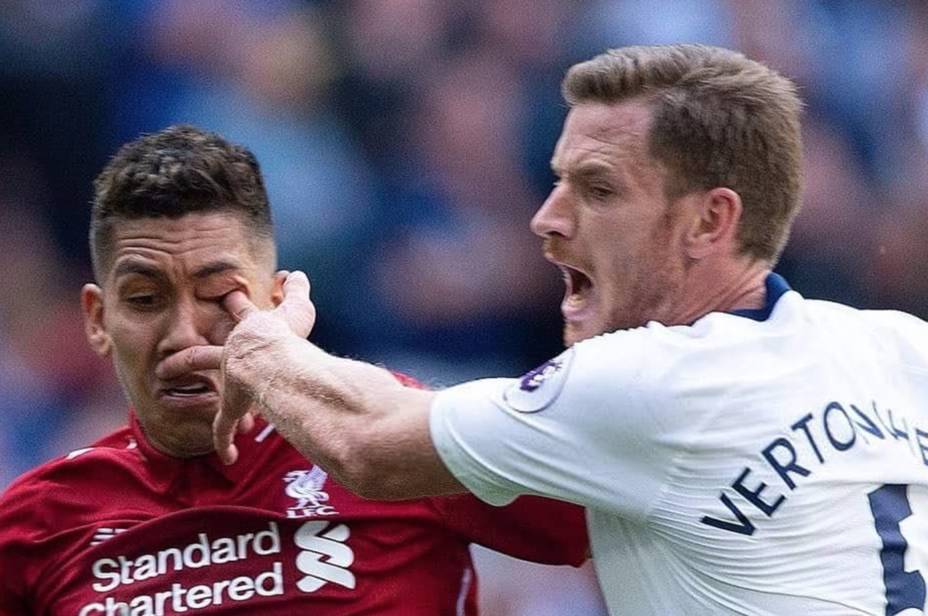 Vertonghen acceca Firmino in uno scontro di gioco nel corso della partita Tottenham Liverpool poi…